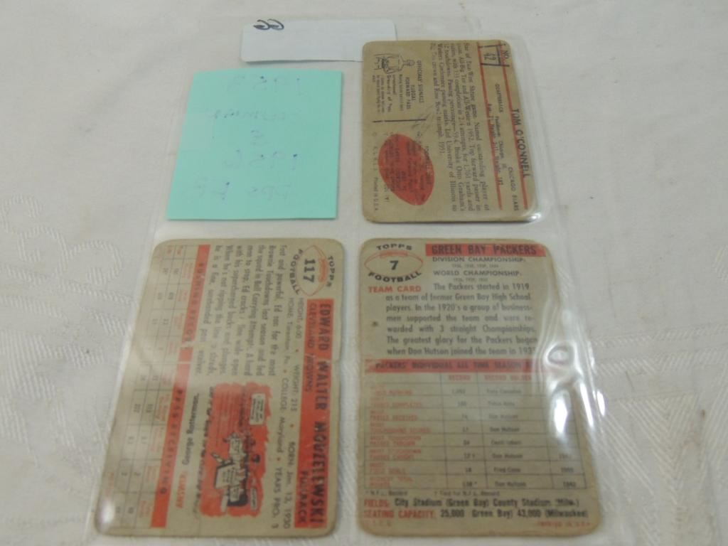 TOM OCONNELL, GREEN BAY PACKERS, ED MADZELEQSKI FOOTBALL PLAYER CARDS. TRADING CARDS. COLLECTIBLE. FOOTBALL MEMORABILIA. GOOD CONDITION AS SHOWN. SEE PHOTO FOR MORE DETAILS.