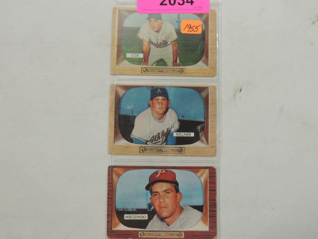 LOT 3 1955 BOWMAN BASEBALL CARDS: COX, KELLNER, MR