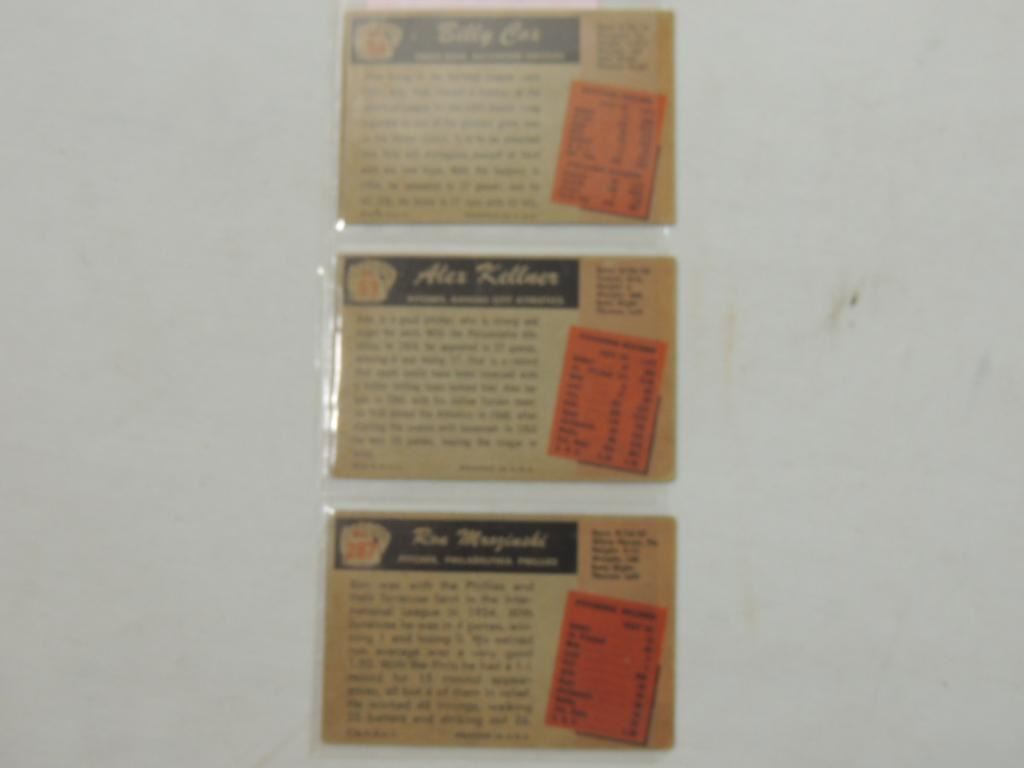 BILLY COX #56, ALEX KELLNER #53, RON MROZINSKI #287 BASEBALL PLAYER CARDS, TRADING CARDS, COLLECTIBLE, BASEBALL MEMORABILIA GOOD CONDITION, AS SHOWN SEE PHOTO FOR MORE DETAILS