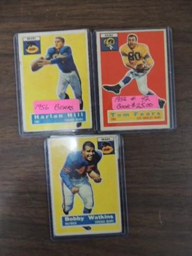 LOT 3 (2) 1956 TOPPS CHICAGO BEARS FOOTBALL CARDS: #59, 95 - 1956 TOPPS #42 FOOTBALL PLAYER CARD TOM FEARS. AS SHOWN. VIEW PICTURE FOR DETAIL.