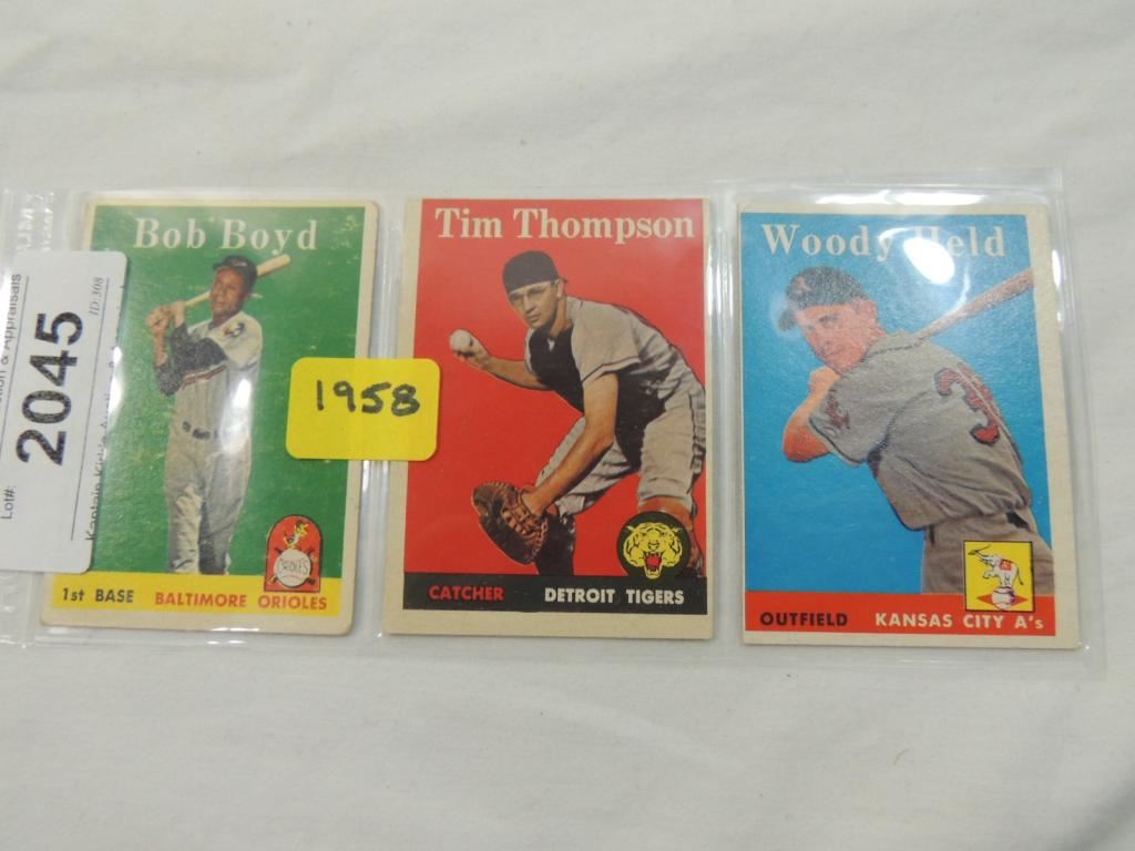 BOB BOYD, TIM THOMPSON, WOODY HELD BASEBALL PLAYER CARDS, COLLECTIBLE, TRADING CARDS, BASEBALL MEMORABILIA, SPORTS MEMORABILIA, GOOD CONDITION, AS SHOWN SEE PHOTO FOR MORE DETAILS.
