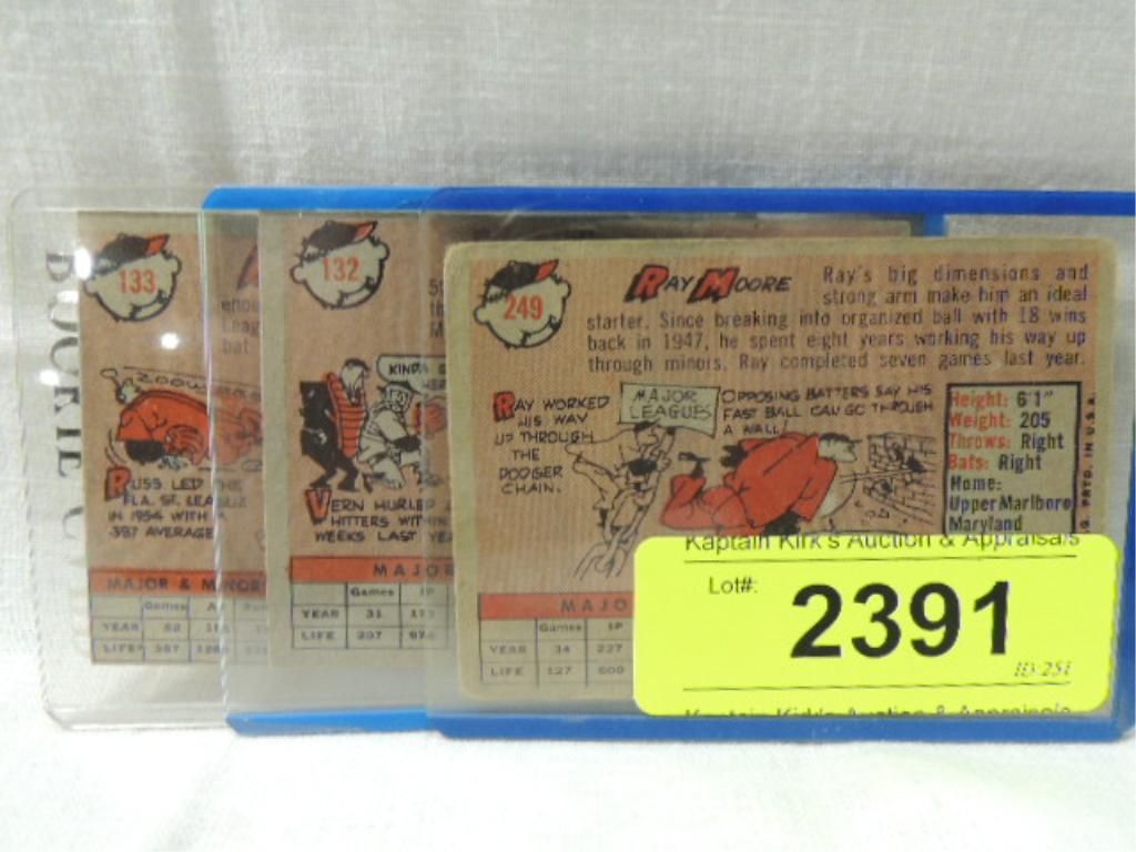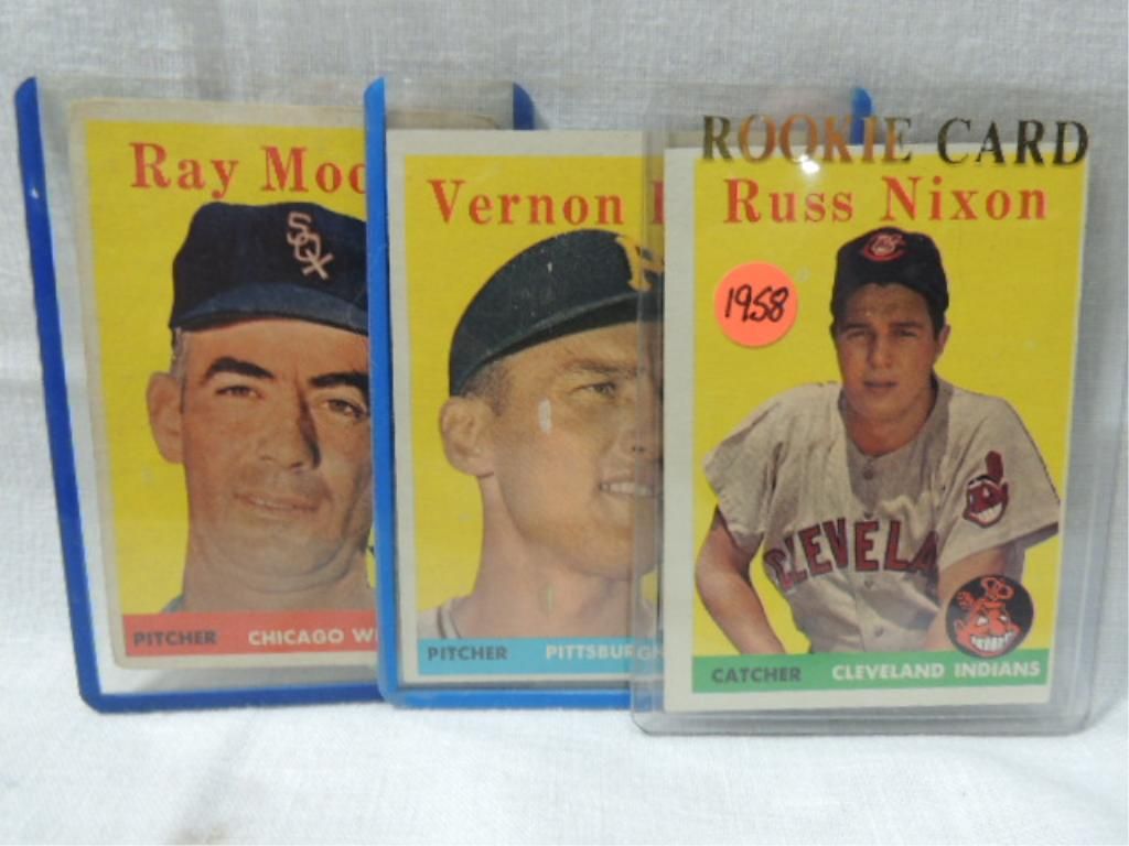 LOT 3 1958 TOPPS BASEBALL PLAYERS CARDS. RUSS NIXON, VERNON LAW, RAY MOORE. SEE PICTURE FOR DETAILS.