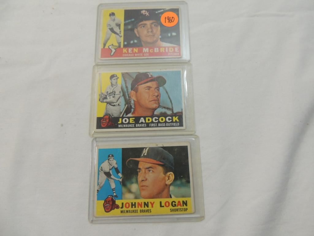 LOT 3 1960 BASEBALL CARDS: MCBRIDE, ADCOCK, LOGAN