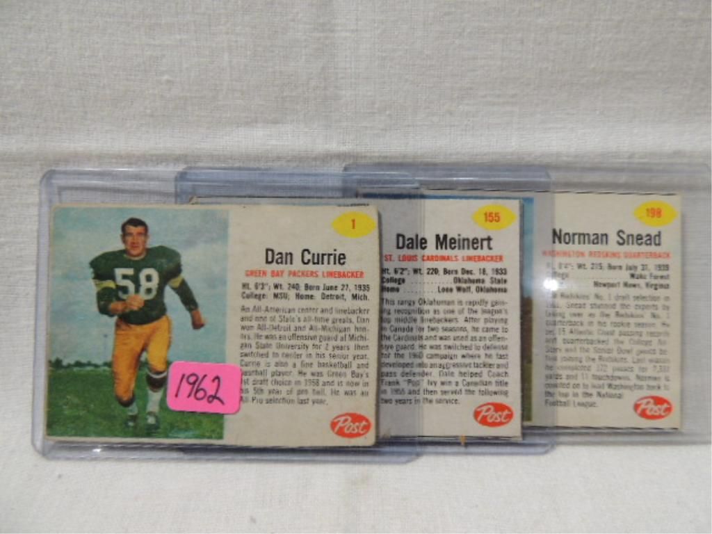 LOT 3 1962 POST FOOTBALL PLAYER CARDS. AS SHOWN. SEE PHOTO FOR DETAILS.