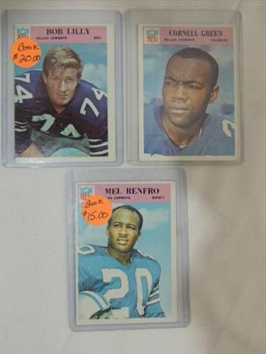 LOT 3 1966 PHILADELPHIA FOOTBALL CARD: #57, 63, 60. LILLY, RENFRO, GREEN. AS SHOWN. VIEW PICTURE FOR DETAIL.