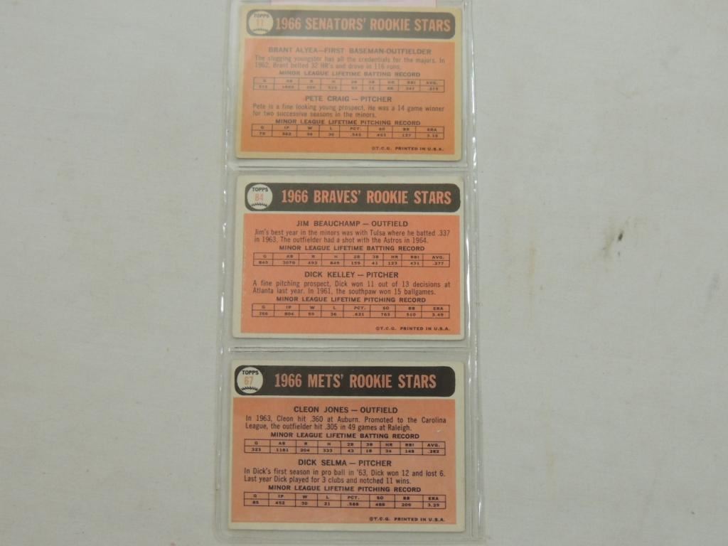 SENATORS BRANT ALYEA & PETE CRAIG, BRAVES JIM BEAUCHAMP & DICK KELLEY, METS CLEON JONES & DICK SELMA. BASEBALL PLAYER CARDS, TRADING CARDS, COLLECTIBLE, BASEBALL MEMORABILIA GOOD CONDITION, AS SHOWN SEE PHOTO FOR MORE DETAILS