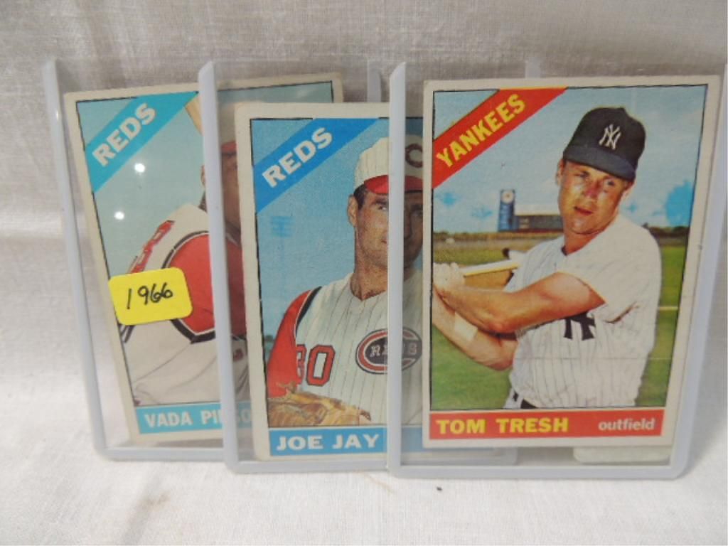 LOT 3 1966 TOPPS BASEBALL PLAYERS CARDS. VADA PINSON, JOE JAY, TOM TRESH. SEE PICTURE FOR DETAILS