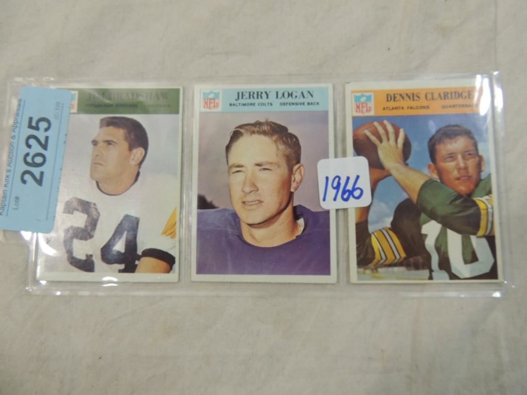 JIM BRADSHAW, JERRY LOGAN, DENNIS CLARIDGE FOOTBALL PLAYER CARDS. TRADING CARDS. COLLECTIBLE. FOOTBALL MEMORABILIA. GOOD CONDITION AS SHOWN. SEE PHOTO FOR MORE DETAILS.