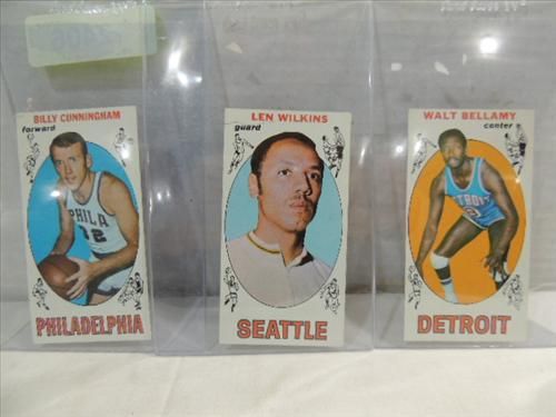 LOT 3 1968-69 BASKETBALL PLAYER CARD: WALT BELLAMY, LEN WILKINS AND BILLY CUNNINGHAM. AS SHOWN. VIEW PICTURE FOR DETAIL.