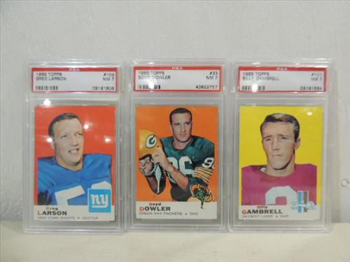 LOT 3 1969 TOPPS #101, 33, 106 GRADED FOOTBALL CARDS. GRADED PSA NM 7. AS SHOWN. VIEW PICTURE FOR DETAIL.