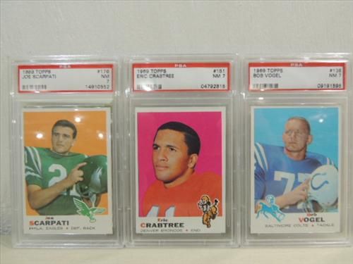 LOT 3 1969 TOPPS #138, 151, 176 GRADED FOOTBALL CARDS. GRADED BY PSA NM 7. AS SHOWN. VIEW PICTURE FOR DETAIL.