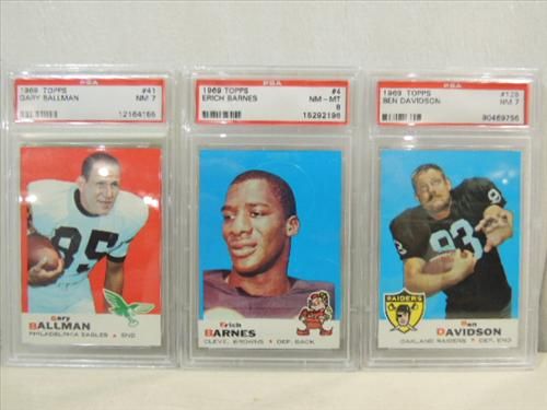 LOT 3 1969 TOPPS #41, 4, 128 GRADED FOOTBALL CARDS. GRADED BY PSA NM 7 TO NM-MT 8. AS SHOWN. VIEW PICTURE FOR DETAIL.