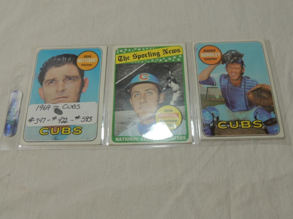 DON NOTTEBART, DON KESSINGER, RANDY HUNDLEY, CHICAGO CUBS. BASEBALL TRADING CARDS. COLLECTIBLE. VINTAGE. IN BINDER SHEETS. AS SHOWN. SEE PHOTO FOR MORE DETAILS.