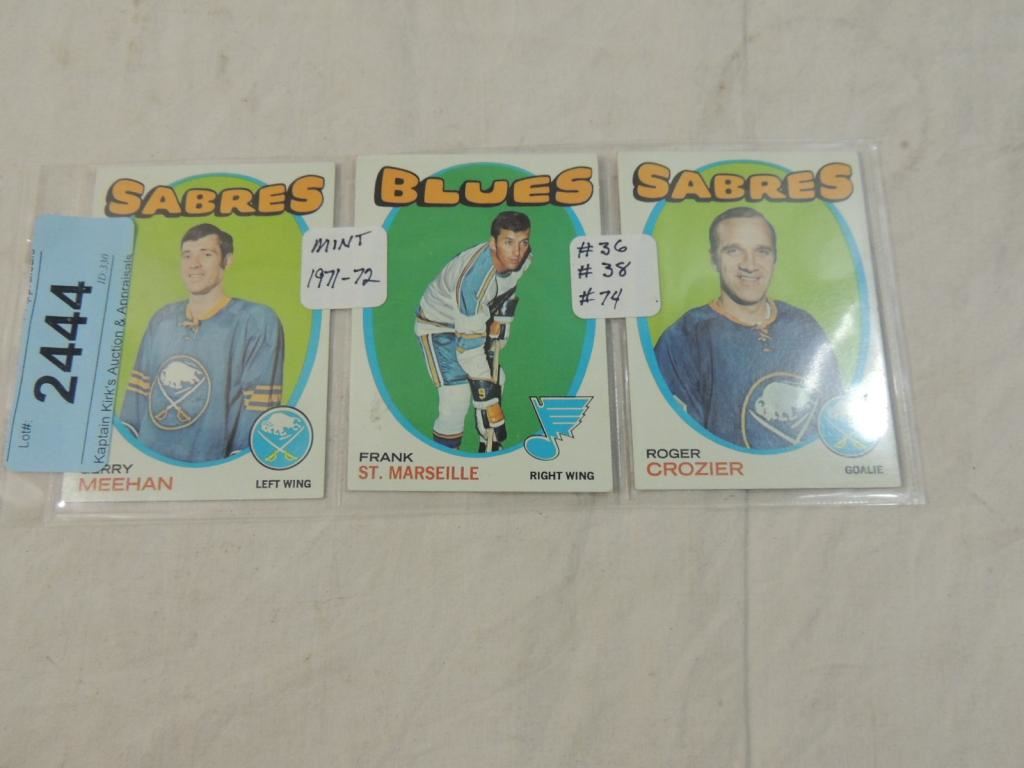 GERRY MEEHAN, FRANK ST. MARSEILLE, ROGER CROZIER HOCKEY PLAYER CARD. HOCKEY TRADING CARDS. COLLECTIBLE. GOOD CONDITION. GREAT CONDITION. AS SHOWN. SEE PHOTO FOR MORE DETAILS.