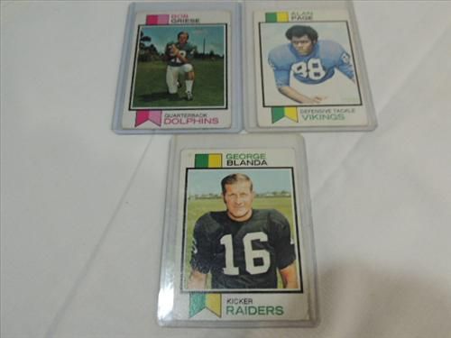 LOT 3 1972 TOPPS FOOTBALL CARDS: BOB GRIESE, ALAN PAGE & GEORGE BLANDA. AS SHOWN. VIEW PICTURE FOR DETAIL.