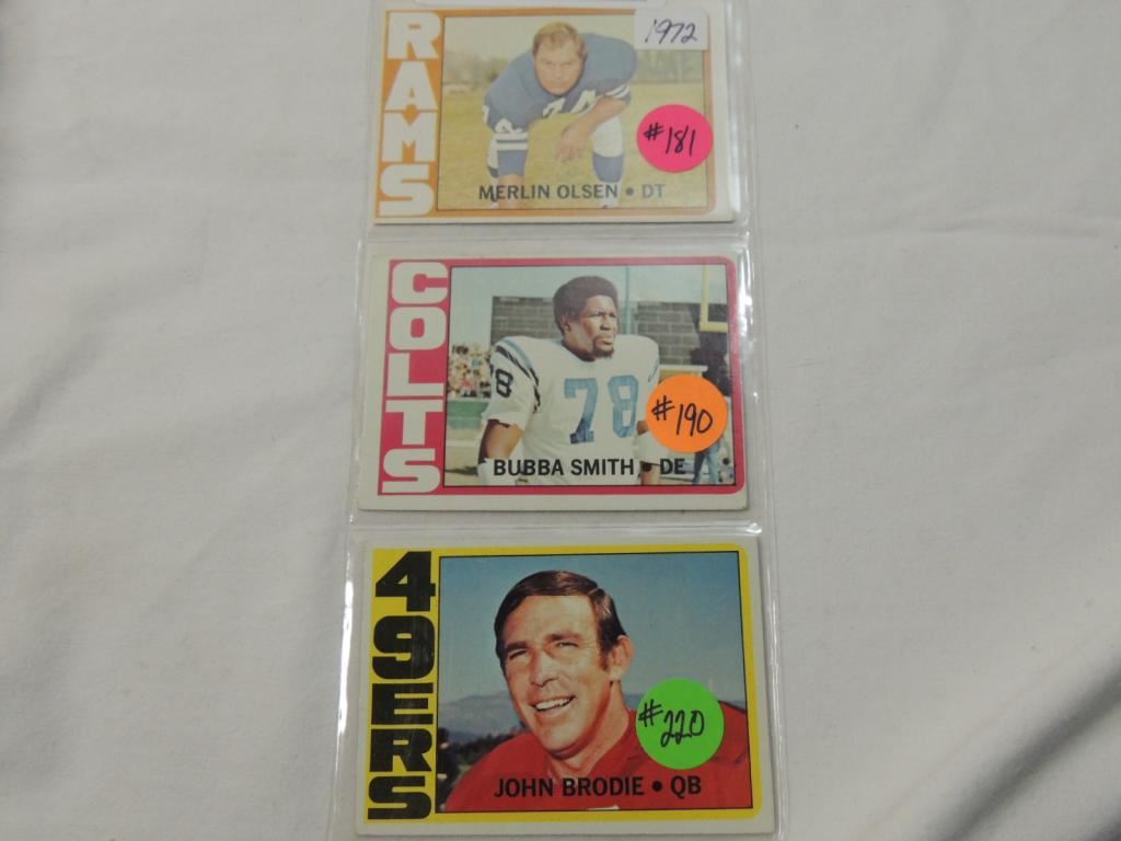 LOT 3 1972 TOPPS FOOTBALL CARDS:OLSEN, SMITH, BROD