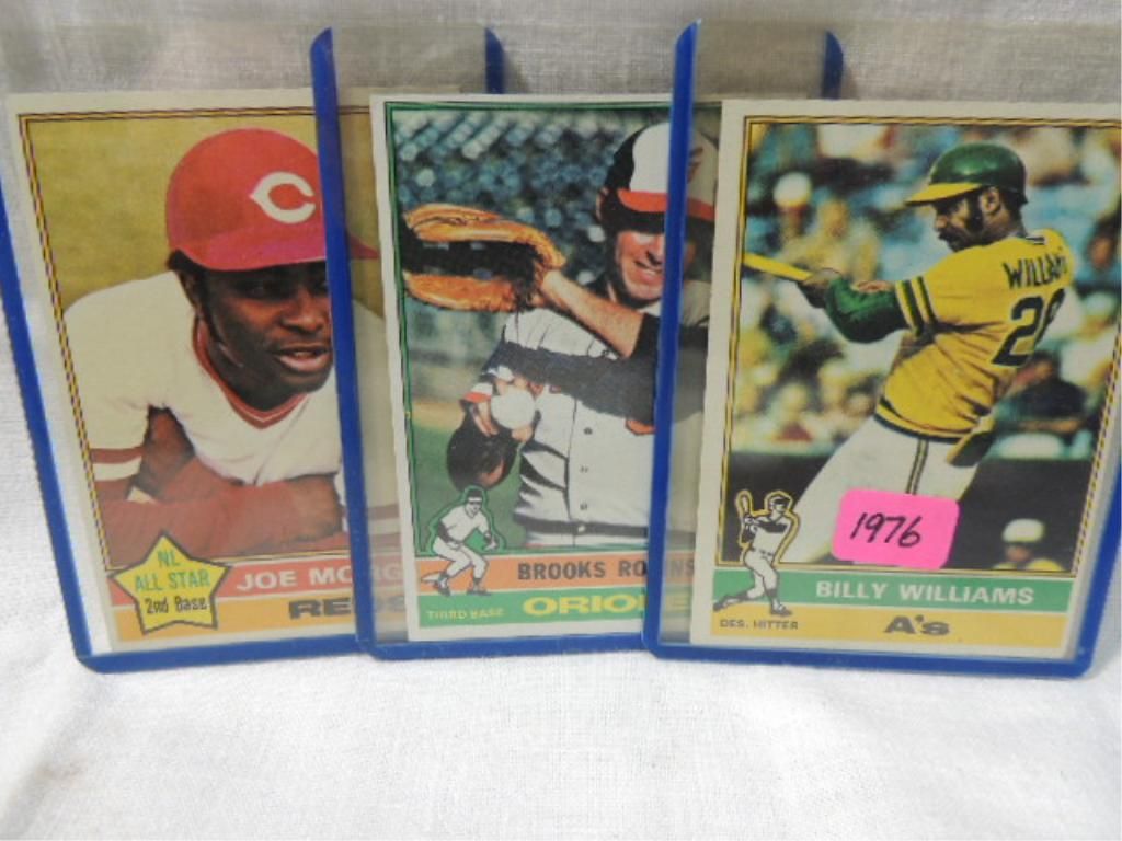 LOT 3 1976 TOPPS BASEBALL PLAYERS CARDS. BILLY WILLIAMS, BROOKS ROBINSON, JOE MORGAN. SEE PICTURE FOR DETAILS