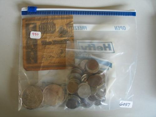 LOT, (3) 1982 SUNSHINE MINE 1 OZ SILVER MEDALLION, MEXICAN SILVER COIN, MISC. CANADIAN COINS & COPY