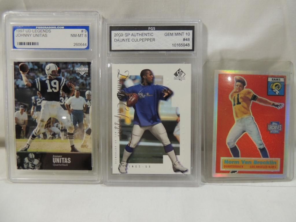 GRADED NM-MT 8. AS SHOWN. SEE 2000 GRADED DAUNTE CULPEPPER SP AUTHENTIC #48 GEM MINT 10 AND 1997 UD LEGENDS JOHNNY UNITAS #9 FOOTBALL CARD PHOTO FOR DETAILS. FOOTBALL PLAYER CARD. FOOTBALL TRADING CARDS