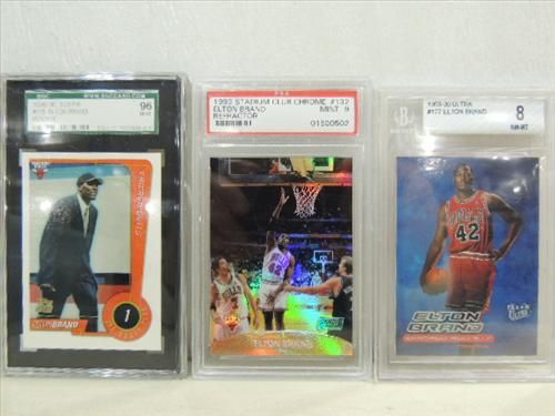 LOT 3 1999-00 GRADED ELTON BRAND BASKETBALL CARDS: ULTRA #127, STADIUM CLUB #132, TOPPS #115. AS SHOWN. VIEW PICTURE FOR DETAIL.