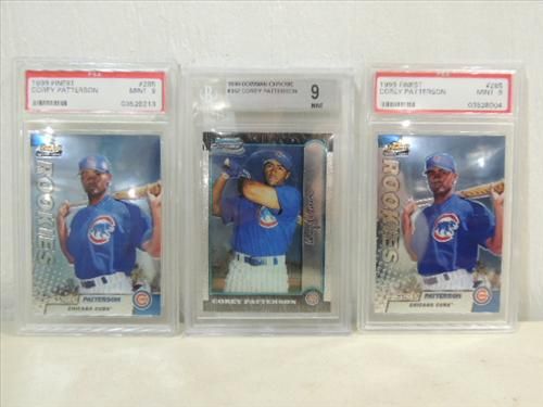 LOT 3 1999 COREY PATTERSON GRADED BASEBALL CARDS. (2) FINEST #285 & BOWMAN #352. AS SHOWN. VIEW PICTURE FOR DETAIL.