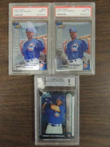 LOT 3 1999 COREY PATTERSON GRADED BASEBALL CARDS. (2) FINEST #285 & BOWMAN #352. AS SHOWN. VIEW PICTURE FOR DETAIL.