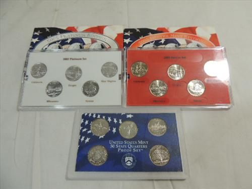 LOT 3 (2) 2005 & 1999-S US STATE QUARTER SETS. 2005 ARE DENVER MINT & PLANTINUM PLATED. AS SHOWN. VIE WPICTURE FOR DETAIL.