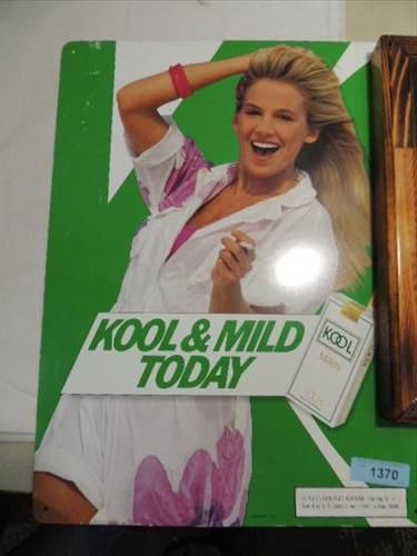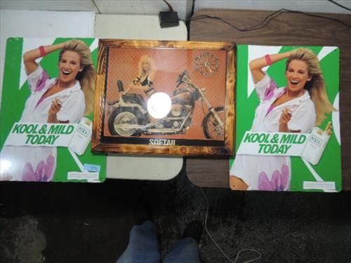 LOT 3 (2) TOBACIANA METAL KOOL CIGARETTE SIGNAGE 18X24 & HARLEY-DAVIDSON SOFTAIL PICTURE 22X18. AS SHOWN. VIEW PICTURE FOR DETAIL.