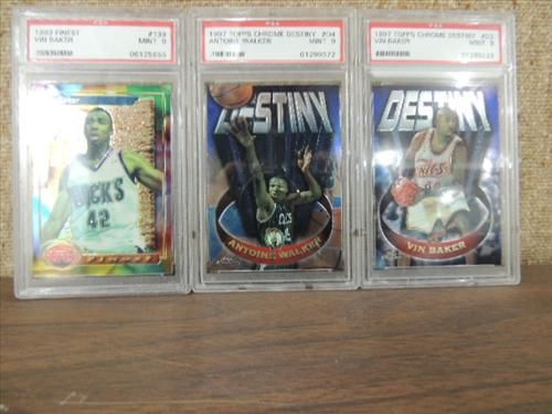 LOT 3 (2) VIN BAKER & ANTONIE WALKER GRADED BASKETBALL CARDS: 1993 FINEST #139, 1997 TOPPS #D4 AND 1997 TOPPS #D3. AS SHOWN. VIEW PICTURE FOR DETAIL.