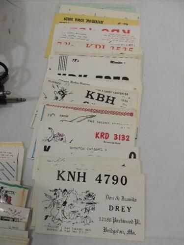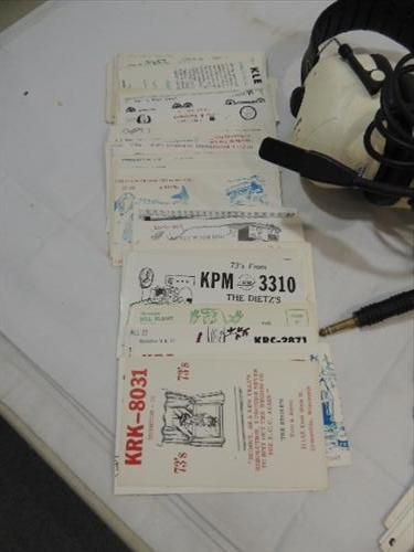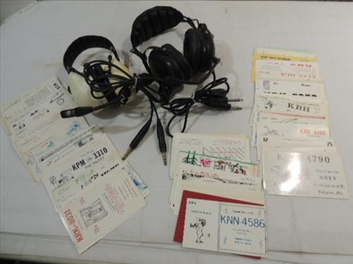 LOT 3 (2) VINTAGE CB'ER BASE STATION HEAD PHONES ( BLACKHAWK FLIGHTCOM, PELTOR) & 50+ VINTAGE CB'ER CALL NUMBER POST CARDS. AS SHOWN. VIEW PICTURE FOR DETAIL.
