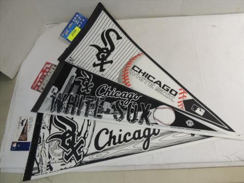 LOT 3 29'L VELT CHICAGO WHITE SOX PENANTS: 2004, 2005, 2009. AS SHOWN. VIEW PICTURE FOR DETAIL.