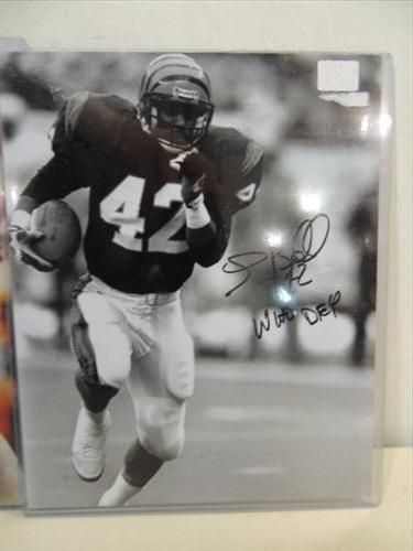 8X10 FOOTBALL PHOTO AUTOGRAPH E.J. JUNIOR COA FROM PRIMETIME COLLECTIONS, 8X10 FOOTBALL PHOTO AUTOGRAPHED ERIC BELL COA FROM PRIMETIME COLLECTIONS & 8X10 FOOTBALL PHOTO AUTOGRAPHED JONATHAN VILMA COA FROM PRIMETIME COLLECTIONS. AS SHOWN. VIEW PICTURE FOR DETAIL. PLEASE BE ADVISED, AND INFORMED REGARDING SIGNATURES OR AUTOGRAPHS THAT WE SELL AT AUCTION: WE ARE NOT AUTHENTICATORS, AND WE DO NOT AUTHENTICATE, OR VALIDATE ANY AUTOGRAPHS OR SIGNATURES THAT WE OFFER AT AUCTION. SOME AUTOGRAPHS OR SIGNATURES MAY COME WITH AN AUTHENTICATION FROM ANY ONE OF LITERALLY HUNDREDS OF AUTHENTICATORS ACROSS THE COUNTRY, AND AROUND THE WORLD. WE DO NOT ENDORSE ANY AUTHENTICATOR, NOR DO WE GUARANTEE THAT ANY AUTOGRAPH OR SIGNATURE IS AUTHENTIC, OR THAT IT WILL PASS AUTHENTICATION BY ANY AUTHENTICATOR. ALL AUTOGRAPHS OR SIGNATURES ARE SOLD