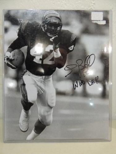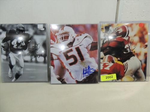 8X10 FOOTBALL PHOTO AUTOGRAPH E.J. JUNIOR COA FROM PRIMETIME COLLECTIONS, 8X10 FOOTBALL PHOTO AUTOGRAPHED ERIC BELL COA FROM PRIMETIME COLLECTIONS & 8X10 FOOTBALL PHOTO AUTOGRAPHED JONATHAN VILMA COA FROM PRIMETIME COLLECTIONS. AS SHOWN. VIEW PICTURE FOR DETAIL. PLEASE BE ADVISED, AND INFORMED REGARDING SIGNATURES OR AUTOGRAPHS THAT WE SELL AT AUCTION: WE ARE NOT AUTHENTICATORS, AND WE DO NOT AUTHENTICATE, OR VALIDATE ANY AUTOGRAPHS OR SIGNATURES THAT WE OFFER AT AUCTION. SOME AUTOGRAPHS OR SIGNATURES MAY COME WITH AN AUTHENTICATION FROM ANY ONE OF LITERALLY HUNDREDS OF AUTHENTICATORS ACROSS THE COUNTRY, AND AROUND THE WORLD. WE DO NOT ENDORSE ANY AUTHENTICATOR, NOR DO WE GUARANTEE THAT ANY AUTOGRAPH OR SIGNATURE IS AUTHENTIC, OR THAT IT WILL PASS AUTHENTICATION BY ANY AUTHENTICATOR. ALL AUTOGRAPHS OR SIGNATURES ARE SOLD