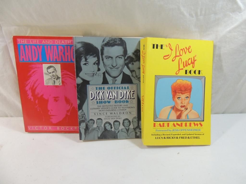 ANDY WARHOL, DICK VAN DYKE, AND I LOVE LUCY BOOKS. SOFT COVER BOOKS. AS SHOWN SEE PHOTO FOR MORE DETAILS.