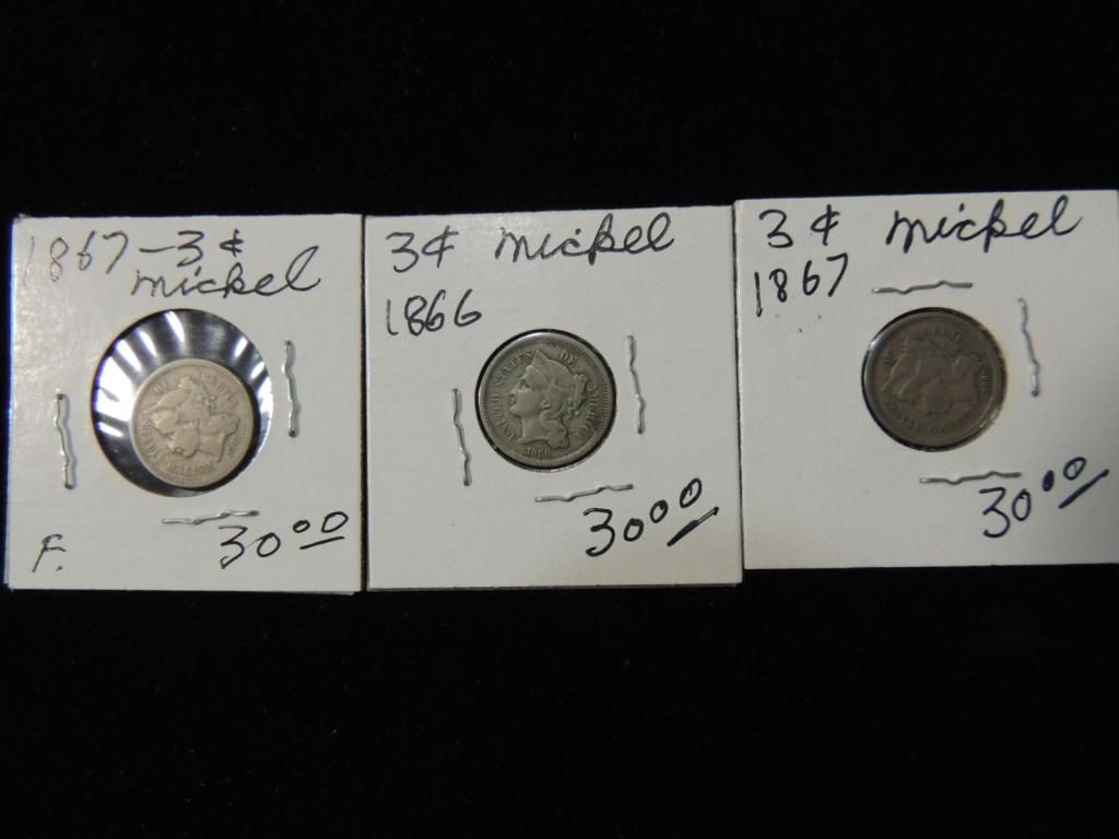 1867 3 CENT NICKELS 1866 3 CENT NICKELS US CURRENCY. COIN COLLECTIBLE. UNITED STATES COINS. MONEY COLLECTIBLE. AS SHOWN SEE PHOTO FOR MORE DETAILS.