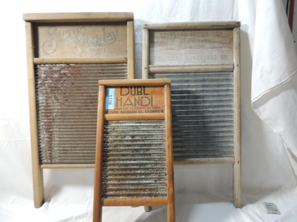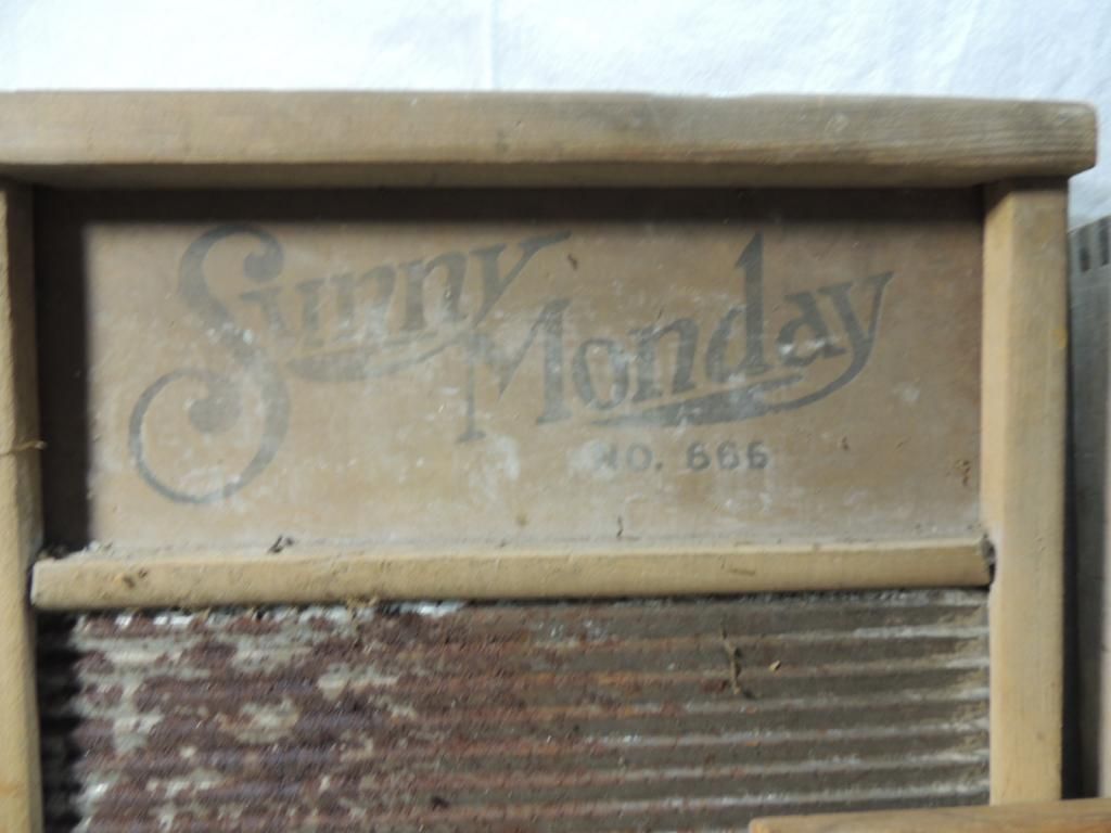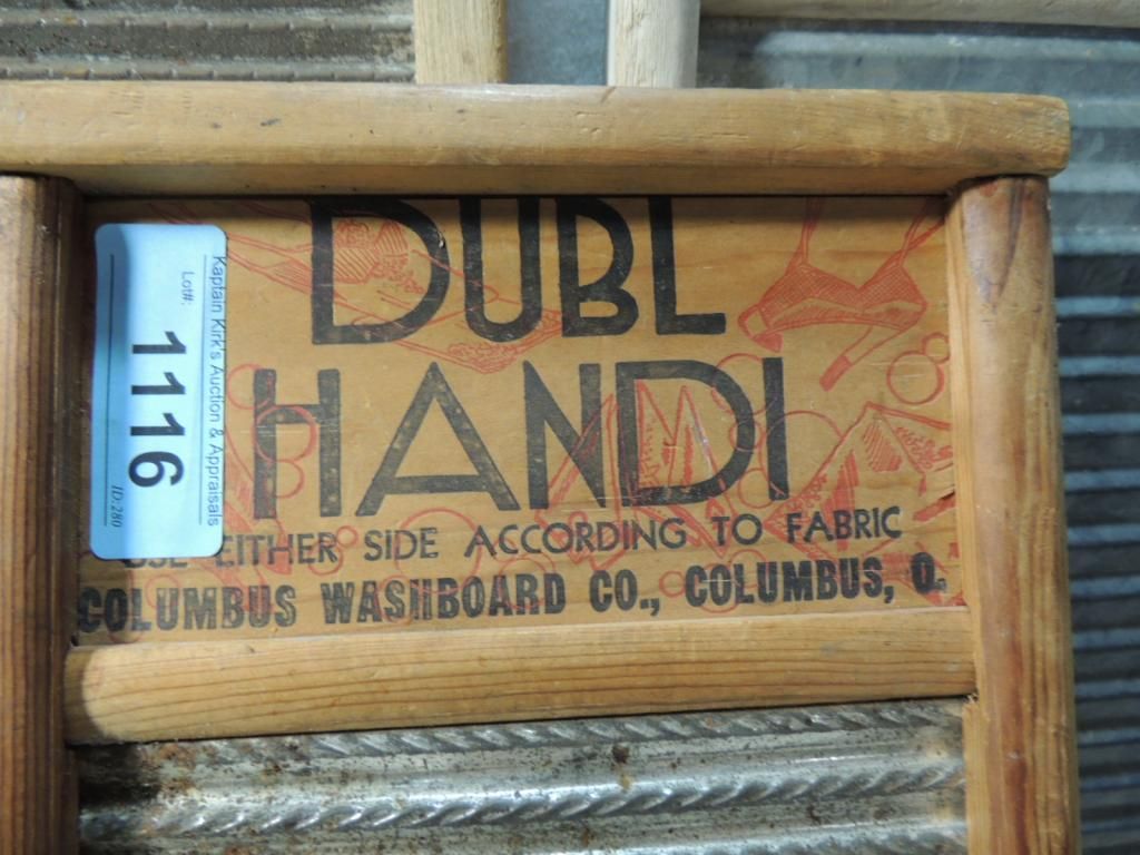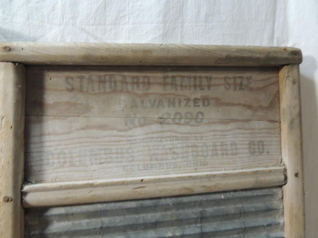 GOOD CONDITION. ADS STILL SHOWING. DUBL HANDI. STANDARD FAMILY SIZE COLUMBUS WASHBOARD CO. SUNNY MONDAY. WOOD METAL AS SHOWN. SEE PHOTO FOR MORE DETAILS.