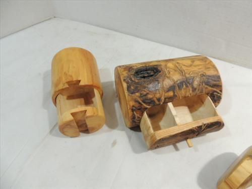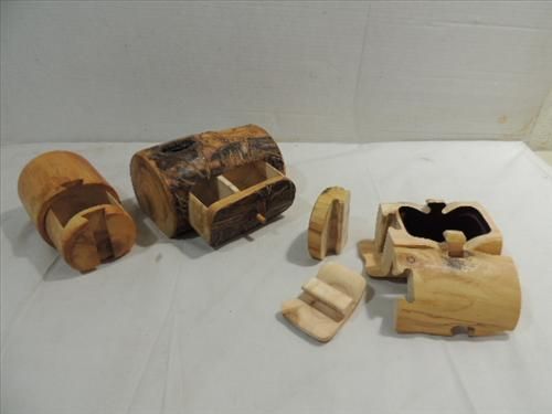 LOT 3 ASPEN WOOD PUZZLE TINDER JEWELRY BOXES. AS SHWON. VIEW PICTURE FOR DETAIL.