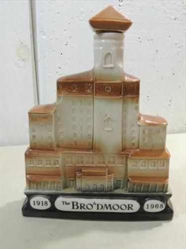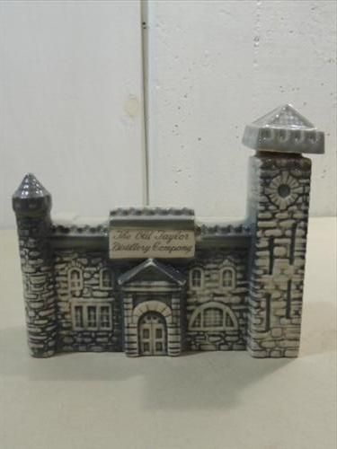 LOT 3 ASSORTED CERAMIC DECANTERS: 1968 JIM BEAM BROADMOOR, 1970 OLD MR BOSTON BOURBON ILLINOIS STATE CAPITOL AND OLD TAYLOR DISTILLERY.  AS SHOWN.  VIEW PICTURE FOR DETAIL.