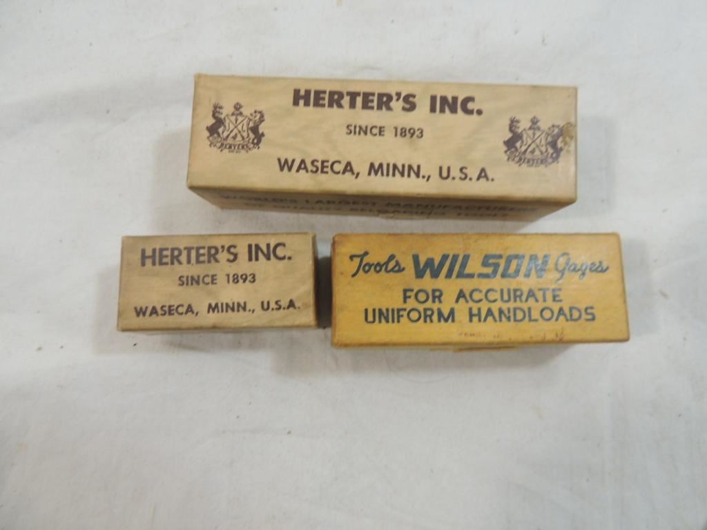 WILSON GAGES, HERTERS AMMUNITION TOOLS RELOADING TOOLS, HAND LOAD TOOLS, AS SHOWN SEE PHOTO FOR MORE DETAILS.