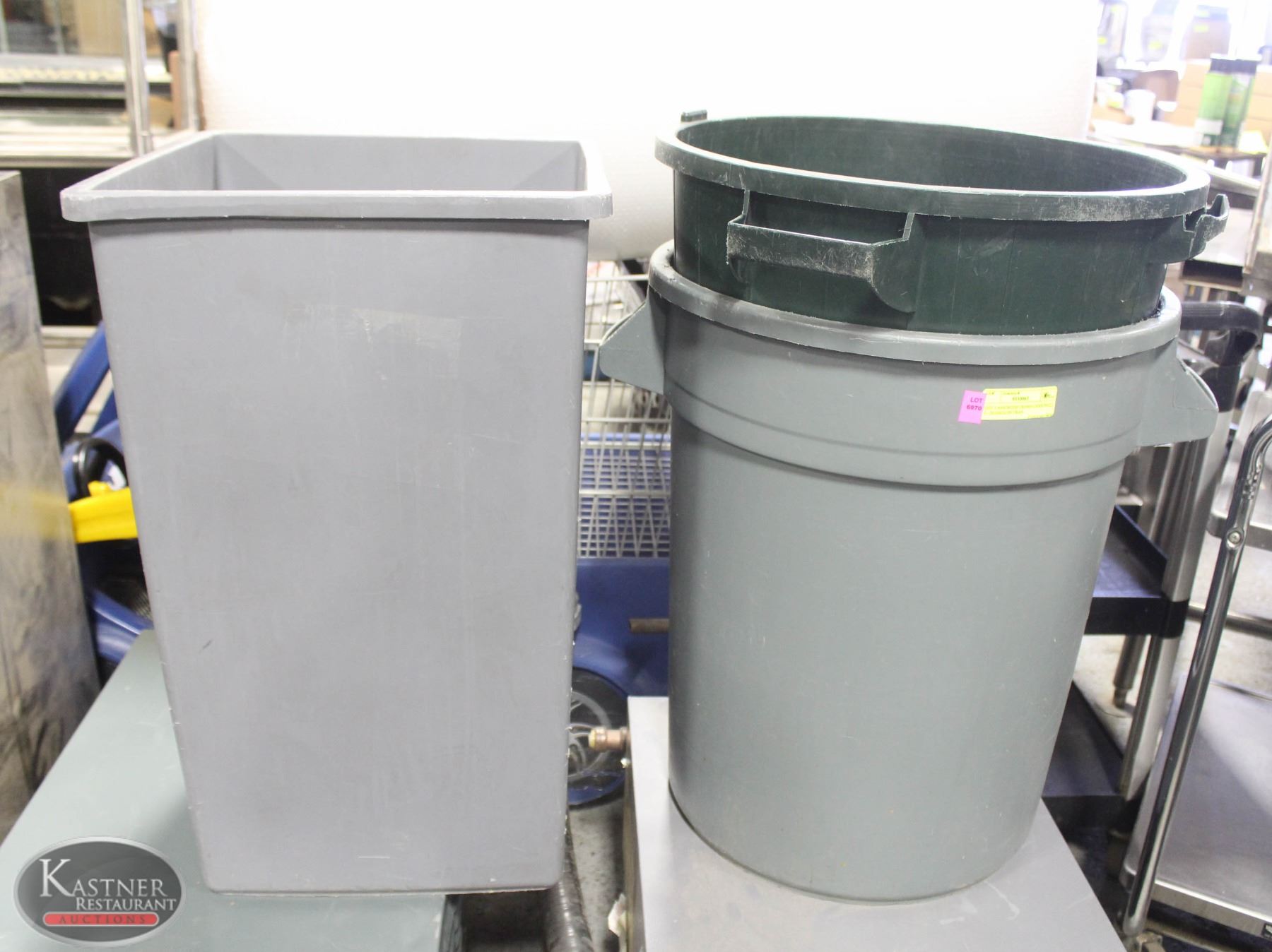 TRASH CANS , LAUNDRY BASKET, 2 BUCKET , STOOL, TRASH CAN