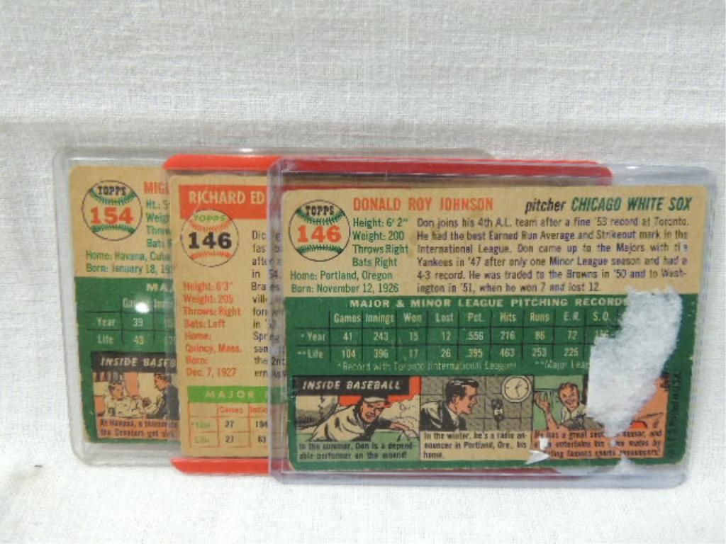1954 TOPPS #154 BASEBALL CARD MIKE FORNIELES. 1966 TOPPS #300 BASEBALL CARD BOB CLEMENTE. 1955 TOPPS #146 BASEBALL PLAYER CARD DICK DONOVAN. AS SHOWN. VIEW PICTURE FOR DETAIL.