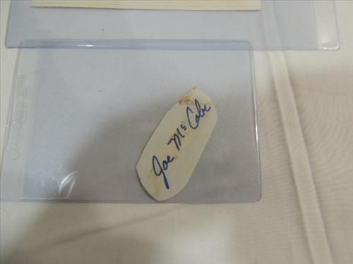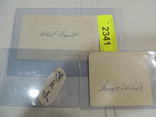 LOT 3 BASEBALL PLAYER AUOTGRAPHS: GEORGE UHLE, WHIT WYATT & JOE MCCABE WITH JAMES SPENCE STAMP ON BACK OF 3X5 CARD. AS SHOWN. VIEW PICTURE FOR DETAIL.