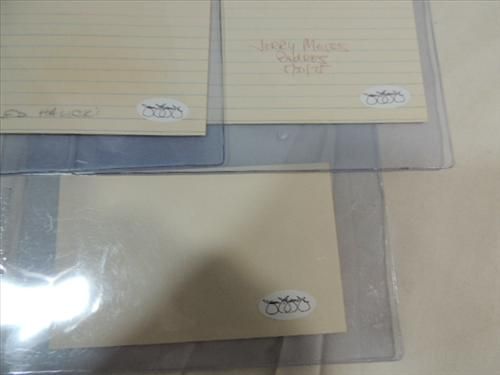 LOT 3 BASEBALL PLAYER AUTOGRAPHS: ED HALICKI, DON MUELLER & JERRY MOSES WITH JAMES SPENCE STAMP ON BACK OF CARD. AS SHOWN. VIEW PICTURE FOR DETAIL.
