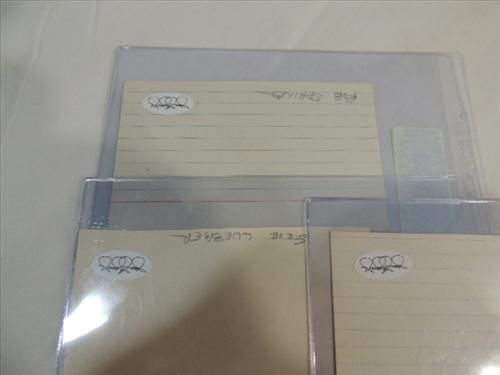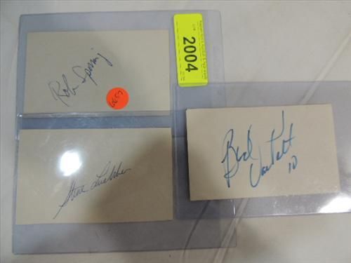 LOT 3 BASEBALL PLAYER AUTOGRAPHS: STEVE LUEBBER, BRAD VAN PELT & ROB SPRING SPOA. INCLUDES JAMES SPENCE STAMP OF APPROVAL ON BACK OF CARD. AS SHOWN. VIEW PICTURE FOR DETAIL.