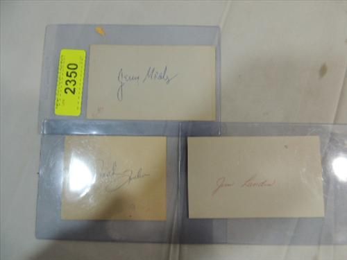 LOT 3 BASEBALL PLAYER AUTOGRAPHS: JERRY MOSES, JIM LANDIS & FRANK QUILICI WITH JAMES SPENCE STAMP ON BACK OF CARD. AS SHOWN. VIEW PICTURE FOR DETAIL.