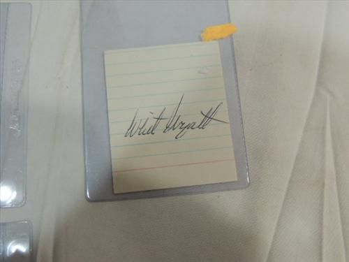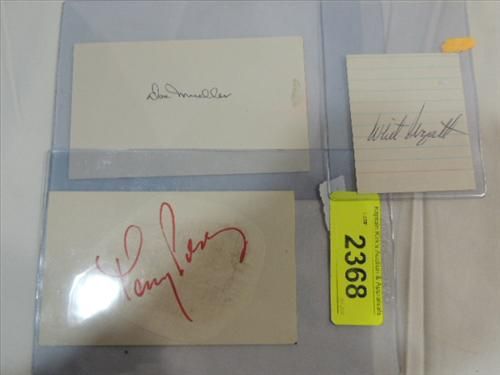 LOT 3 BASEBALL PLAYER AUTOGRAPHS: TONY PEREZ, DON MUELLER & WHIT WYATT WITH JAMES SPENCE STAMP ON BACK OF CARD. AS SHOWN. VIEW PICTURE FOR DETAIL.