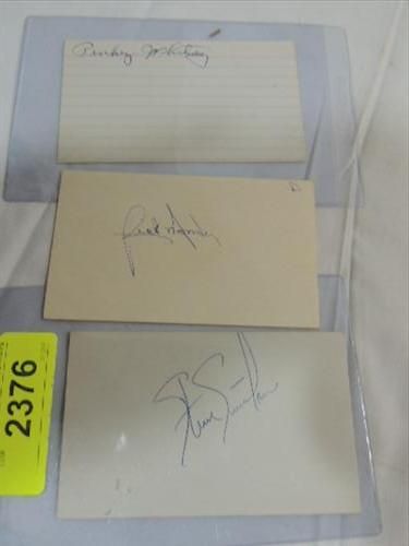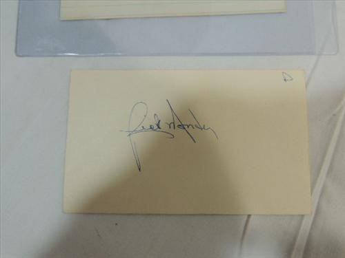 LOT 3 BASEBALL PLAYER AUTOGRAPHS: STEVE SWISHER, PINKY WHITNEY & RICK ANDERSON WITH JAMES SPENCE STAMP ON BACK OF CARD. AS SHOWN. VIEW PICTURE FOR DETAIL.
