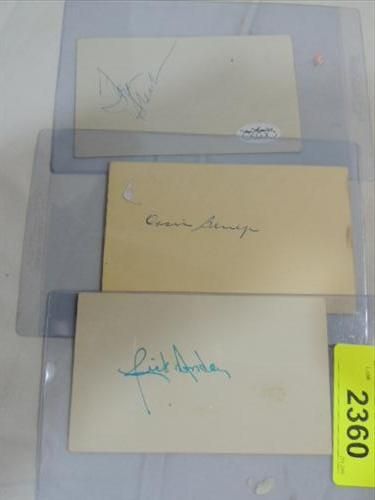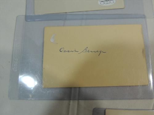 LOT 3 BASEBALL PLAYER AUTOGRAPHS: TOM TRESH, RICK ANDERSON & OSSIE BLUEGE WITH JAMES SPENCE STAMP ON BACK OF CARD. AS SHOWN. VIEW PICTURE FOR DETAIL.