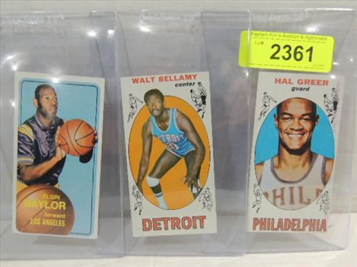 LOT 3 BASKETBALL PLAYER CARDS: 68-69 HAL GREEN, 68-69 WALT BELLAMY & 69-70 ELGIN PAYLOR. AS SHOWN. VIEW PICTURE FOR DETAIL.