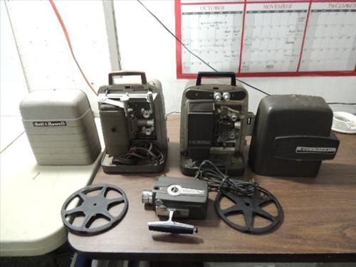 LOT 3 BELL & HOWELL SUPER 8MM MOVIE CAMERA & 2 BELL & HOWEEL PROJECTORS. AS SHOWN. VIEW PICTURE FOR DETAIL.